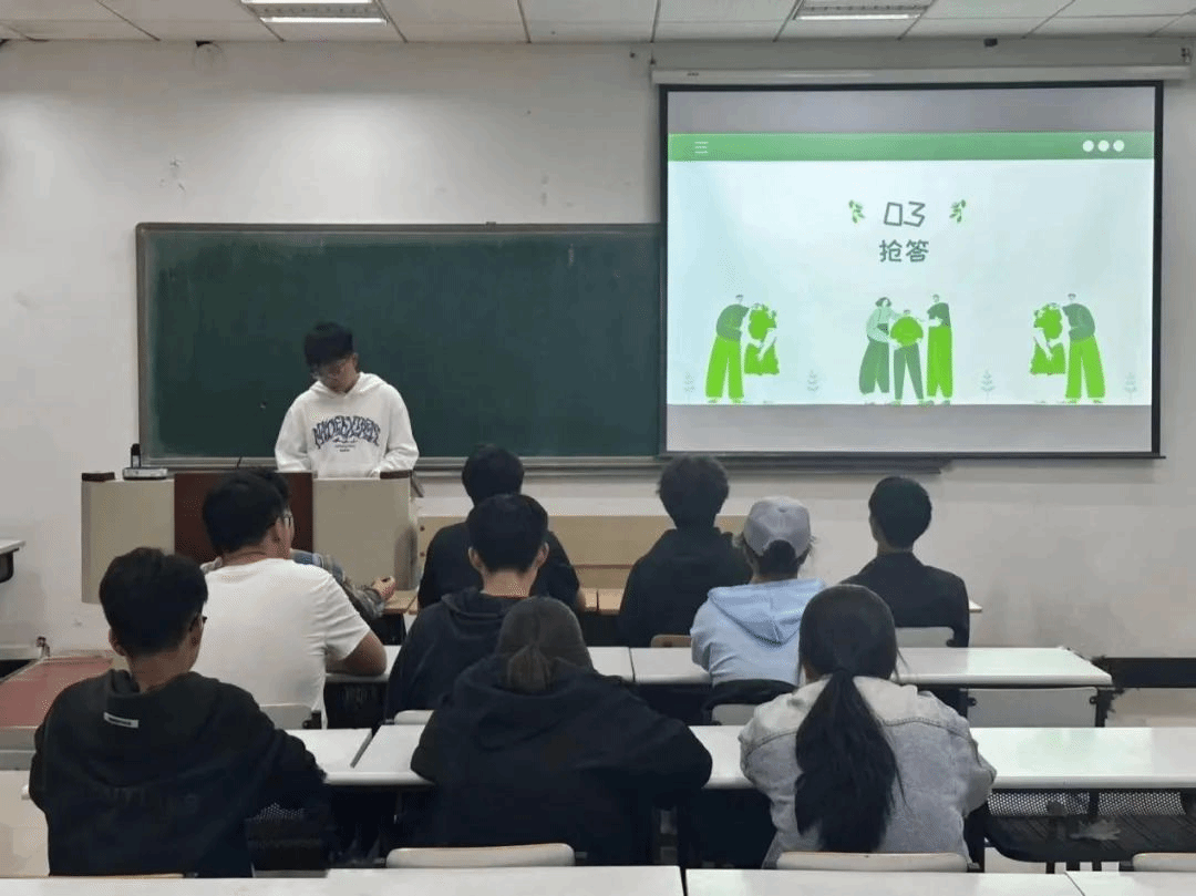 竞赛设有笔试、问答、抢答三个环节。笔试时,同学们全情投入、专注作答,一个个正襟危坐,拿到试卷便迅速进入状态。问答环节,同学们积极踊跃,精神饱满,眼中满是期待与跃跃欲试。主持人提问后,同学们条理清晰地阐述观点,声音洪亮且底气十足,尽显扎实知识储备与良好表达能力,整个问答环节充满活力与智慧。抢答环节,主持人用“破防”“墨菲定律”等网络热词提问,同学们迅速清晰地阐述见解,竞争氛围激烈,大家尽情展现敏捷思维与积极进取精神。